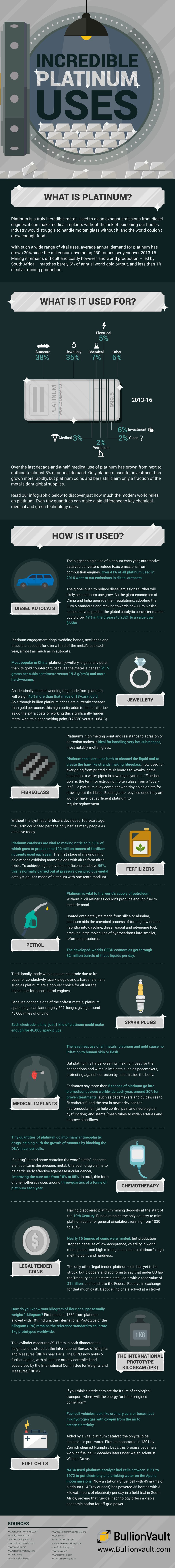 <a title="Incredible Platinum Uses" href="https://www.bullionvault.com/gold-news/infographics/incredible-platinum-uses"><img src=" https://www.bullionvault.com/gold-news/sites/default/files/platinum-uses.png" alt="Incredible uses of platinum infographic" width="960" border="0" /></a><br>From: <a href="https://www.bullionvault.com">Golden Window</a>