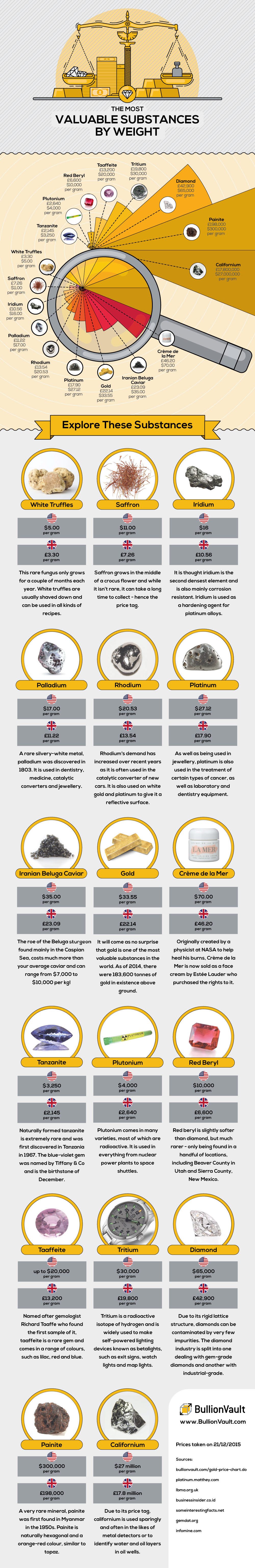 <a title="Most Valuable Substances By Weight Infographic" href="https://www.bullionvault.com/gold-news/infographics/most-valuable-substances-weight"><img src="https://www.bullionvault.com/gold-news/sites/default/files/the-most-valuable-substances-by-weight_0.jpg" alt="Most Valuable Substances Infographic" width="960" border="0" /></a><br>From: <a href="https://www.bullionvault.com">Golden Window</a>